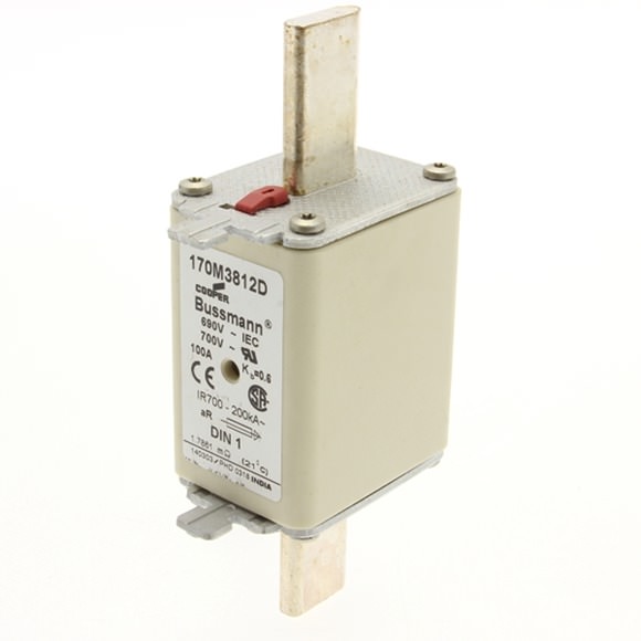 Bussmann — . Предохранитель, высокая скорость, 100 A, перем. ток 690 В, DIN 1, aR, DIN, IEC, двойной индикатор, токоведущие зажимные язычки - 170M3812D