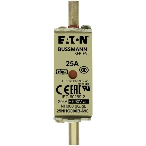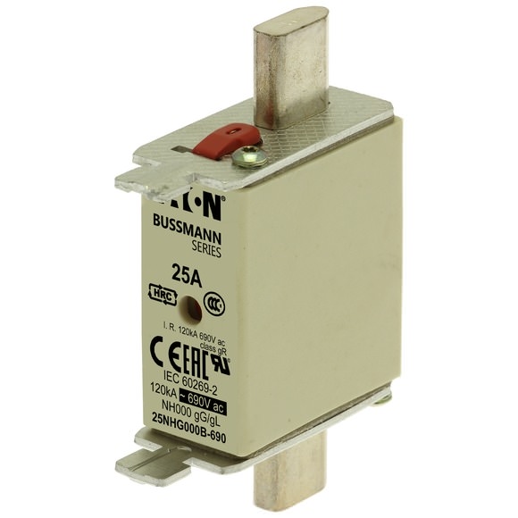 Moeller — Предохранитель, LV, 25 A, перем. ток 690 В, NH000, gL/gG, IEC, двойной индикатор, токоведущие зажимные язычки 25NHG000B-690