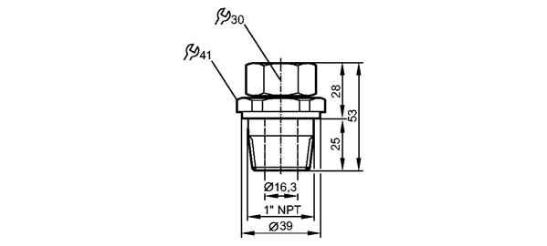 Подключение к процессу 1" NPT Исполнение для емкостных датчиков уровня LK, LI, LT, LL Материал Фланец: нерж.сталь; Накидная гайка: нерж.сталь; распорная втулка: латунь; уплотнительное кольцо: FPM (Viton) Момент затяжки [Nm] 6...9 Вес [kg] 0,322 Примечания