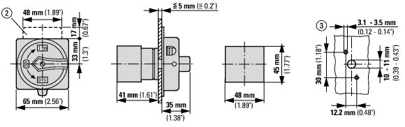 Product Standards UL 508; CSA-C22.2 No. 14-05; CSA-C22.2 No. 94; IEC/EN 60947-3; CE marking UL File No. E36332 UL Category Control No. NLRV CSA File No. 12528 CSA Class No. 3211-07 North America Certification UL listed, CSA certified Specially designed for North America Yes, with an alternative front plate and/or terminal markings to those of the IEC type in combination with "+NA" (105864) Suitable for Branch circuits, suitable as motor disconnect Degree of Protection IEC: IP65; UL/CSA Type 1, 12 Размеры