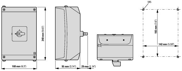 Product Standards UL 508; CSA-C22.2 No. 14-05; CSA-C22.2 No. 94; IEC/EN 60947-3; CE marking UL File No. E36332 UL Category Control No. NLRV CSA File No. 12528 CSA Class No. 3211-05 North America Certification UL listed, CSA certified Specially designed for North America Yes, with additional labeling according to UL on the enclosure Suitable for Branch circuits, suitable as motor disconnect Degree of Protection IEC: IP65; UL/CSA Type 1, 12 Размеры