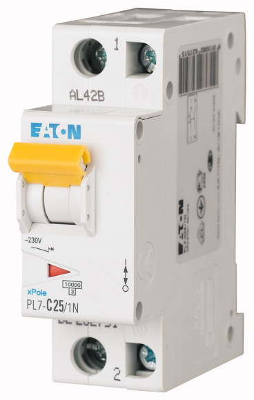 Moeller — . Автоматический выключатель 25А, кривая отключения В, 1+N полюса, откл. способность 10 кА - 262742