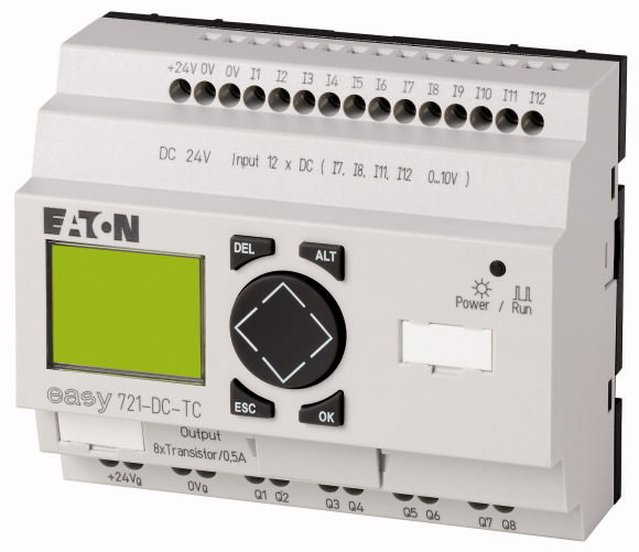 Moeller — Программируемое реле 24 В DC, цифровые, 12 DI (4 могут использоваться как как аналог.), 6DO, транз., дисплей+клавиатура, часы реального времени 104589