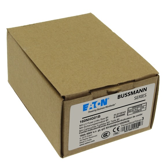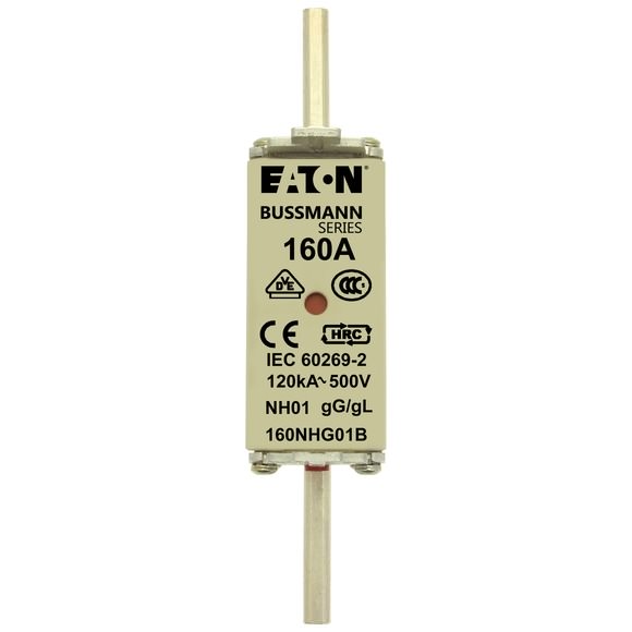 Moeller — Предохранитель, LV, 160 A, перем. ток 500 В, NH01, gL/gG, IEC, двойной индикатор, токоведущие зажимные язычки 160NHG01B