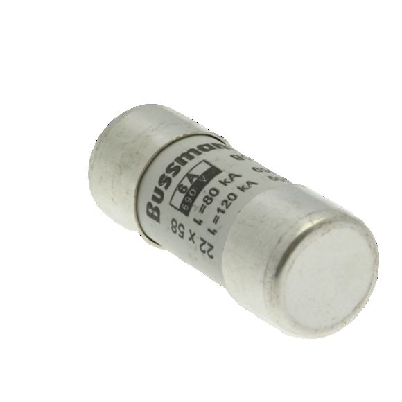 Circuit breakers and fuses (EG000020) / Cylindrical fuse (EC002704) Electric engineering, automation, process control engineering / Electrical installation, device / Safety fuse inserts / Cylindrical fuse (safety fuse) (ecl@ss8.1-27-14-20-02 [AFZ797010]) Size22x58 mm Rated voltageAC 690 V Nominal currentA 6 With strikerYes