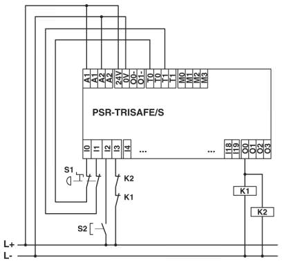 - Свободно конфигурируемый модуль безопасности для контроля цепей аварийного останова, защитных дверей, фоторелейных завес и т.д.