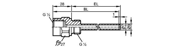 Подключение к процессу G ½ для приборов с резьбовым соединением G½ Монтажная длина EL [mm] 74 Bohrungslänge BL [mm] 100 Исполнение для датчиков температуры с монтажной длиной EL = 100 мм Материал нерж. сталь V4A (1.4404) Вес [kg] 0,132 Примечания