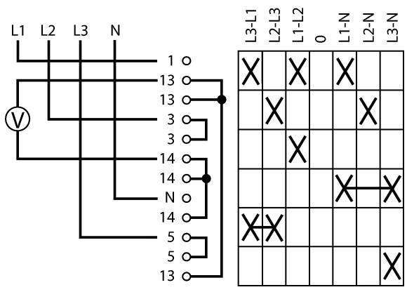 Moeller — . Переключатели подключения вольтметра, контакты: 6, 20 A, 3 x phase-phase, 3 x phase-N, Передняя панель: Phase/Phase-0-Phase/N, 45 °, с фиксацией, Монтаж - 013101