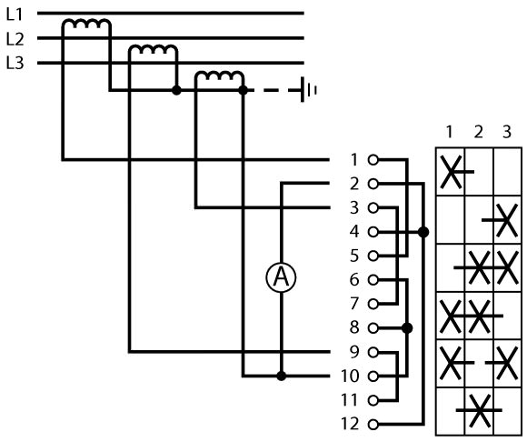 Moeller — . Переключатели подключения амперметра, контакты: 6, 20 A, 3 преобразователя, Передняя панель: 1-2-3, 90 °, с фиксацией, Центральный монтаж - 013396