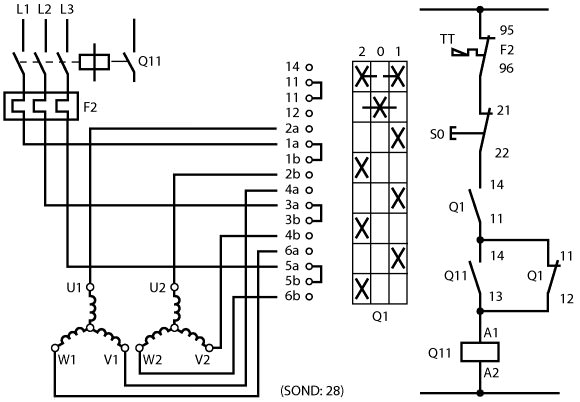 Moeller — . Переключатель полюсов, контакты: 8, 63 A, 2 speeds, 2 separate windings, Передняя панель: 2-0-1, 60 °, с фиксацией, Монтаж - 092132