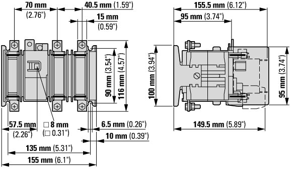 Moeller — . Выключатель-разъединитель-предохранитель, 3-полюсн., 100 A, Промежуточный монтаж, NH00 - 1318546