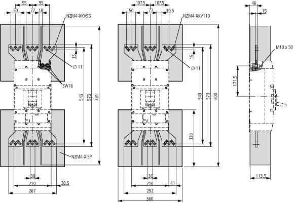 Имеется отверстие для большой крышки NZM4(-4)-XKSAV.