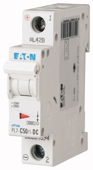 Moeller — . Автоматический выключатель для защиты цепей пост. тока 50А, кривая отключения C, 1 полюс, откл. способность 6 кА - 264894