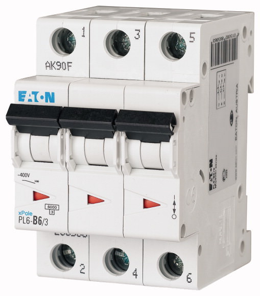 Moeller — . Автоматический выключатель 6А, кривая отключения В, 3 полюса, откл. способность 6 кА - 286586