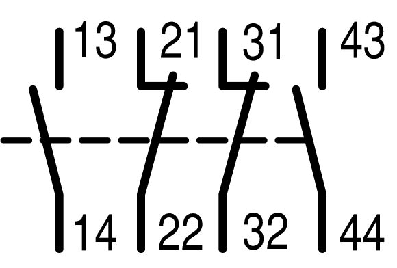 Ассортимент Дополнительное оснащение Принадлежности Модули вспомогательных контактов Описание с принудительно ведомыми контактами Функция для стандартных применений Полюсы 4-полюсн. Техника присоединения Винтовые клеммы Расчетный рабочий ток обычный термический ток, 1-полюсный разомкнут при 60 °C Ith =Ie A 16 AC-15 220 В 230 В 240 В Ie A 6 380 В 400 В 415 В Ie A 4 Назначение контактов Замык. = замыкающий контакт 2 замык Разм. = размыкающий контакт 2 разм. Вид монтажа Фронтальная установка графические условные обозначения Применяемое для DILM40…
