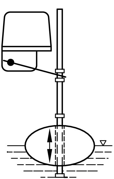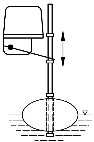 Случай 1 Случай 2 Приведение в действие может быть либо тесно связано с рычагом поплавкового выключателя (случай 1) или с поплавком (случай 2). В случае 1 поплавок захватывает штангу и рычаг управления. В случае 2 поплавок и штанга захватывают рычаг управления. Исполнение, обозначенное последним, должно быть использовано особенно в насосах для грязной воды.