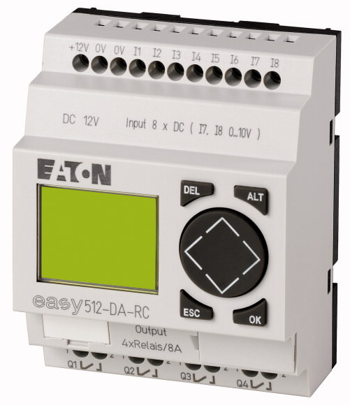Moeller — Программируемое реле 12VDC, цифровые 8 DI (2 могут использоваться как как аналог.), 4DO, реле 10А, дисплей+клавиатура, часы реального времени 104574