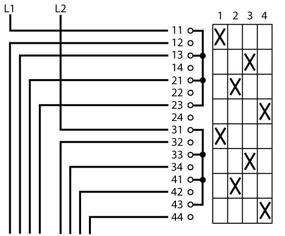 Moeller — Ступенчатые выключатели; 2-полюсный; Iu = 32 A; 90°; переключатель Basis 20100