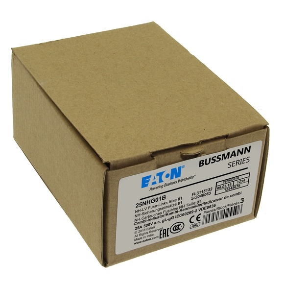 Moeller — Предохранитель, LV, 25 A, перем. ток 500 В, NH01, gL/gG, IEC, двойной индикатор, токоведущие зажимные язычки 25NHG01B