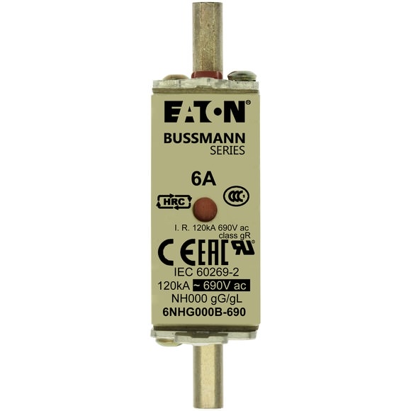 Moeller — Предохранитель, LV, 6 A, перем. ток 690 В, NH000, gL/gG, IEC, двойной индикатор, токоведущие зажимные язычки 6NHG000B-690