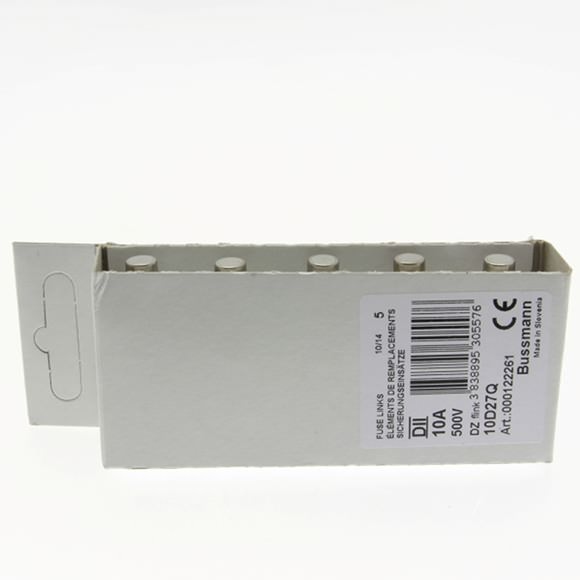 Circuit breakers and fuses (EG000020) / D-system fuse link (EC000099) Electric engineering, automation, process control engineering / Electrical installation, device / Safety fuse inserts / Diazed fuse link (ecl@ss8.1-27-14-20-04 [AFZ799012]) Construction sizeDII Nominal rated currentA 10 Nominal rated voltageV 500 Colour codeRed Utilization categorygR (general purpose semiconductor protection) Release characteristicFast (F)