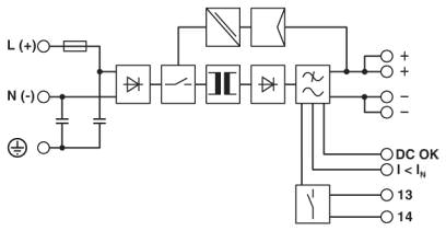 Наименование, выход при нормальном постоянном напряжении, активный Описание выходов Uвых > 0,9 x Uн: Максимальный сигнал Максимальный пусковой ток 20 мА (защищен от коротких замыканий) Ток длительной нагрузки ≤ 20 мА Индикатор состояния UOUT > 0,9 x UN: светодиод "DC OK" зеленого цвета Указание по индикации состояния UOUT < 0,9 x UN: светодиод "DC OK" мигает IOUT < IN: светодиод горит Сечение жесткого проводника мин. 0,2 мм² Сечение жесткого проводника макс. 2,5 мм² Сечение гибкого проводника мин. 0,2 мм² Сечение гибкого проводника макс. 2,5 мм² Сечение провода AWG/kcmil, мин. 20 Сечение провода AWG/kcmil, макс. 12 Мин. момент затяжки 0,5 Нм Момент затяжки, макс. 0,6 Нм Резьба винтов M3 Наименование, выход при нормальном постоянном напряжении, сухой Описание выходов Релейный контакт, Uвых > 0,9 x Uн: контакт замкнут Максимальное напряжение переключения 30 В AC/DC 24 В DC Максимальный пусковой ток ≤ 0,5 А 1 А Ток длительной нагрузки ≤ 1 А Индикатор состояния UOUT > 0,9 x UN: светодиод "DC OK" зеленого цвета Указание по индикации состояния UOUT < 0,9 x UN: светодиод "DC OK" мигает Наименование, выход POWER BOOST, активн. Описание выходов IOUT < IN: максимальный сигнал Выходное напряжение + 24 В DC Максимальный пусковой ток 20 мА (защищен от коротких замыканий) Ток длительной нагрузки ≤ 20 мА Индикатор состояния IOUT > IN: светодиод "BOOST", желтого цвета