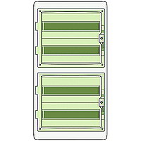 Монтаж шкафа Поверхность Количество 18 мм модулей в ряду 18 Общее количество 18 мм модулей 72 Количество горизонтальных рядов 4 Класс электрической изоляции Класс II Двойная изоляция Обеспечиваемое оборудование 4 комплект для маркировки 4 монтажная планка 2 опора блока клемм 4 блок клемм, 32 отверстия Тип передней крышки Реверсируемый Прозрачный Рассеиваемая мощность, Вт 89 Вт [In] номинальный ток 160 А Тип рейки DIN Количество предварительных выводов PG ISO 17 Количество клеммных блоков 4 с 32 отходящие линии Отходящие линии распределительного блока 64 x 10 mm² 64 x 16 mm² Описание параметров блокировки Доп. замок Материал шкафа Самозатухающий полимер Ширина 448 мм Высота 842 мм Глубина 160 мм Цвет Дверь : прозрачный зеленый Шкаф : светло-серый ( RAL 7035 ) Условия эксплуатации