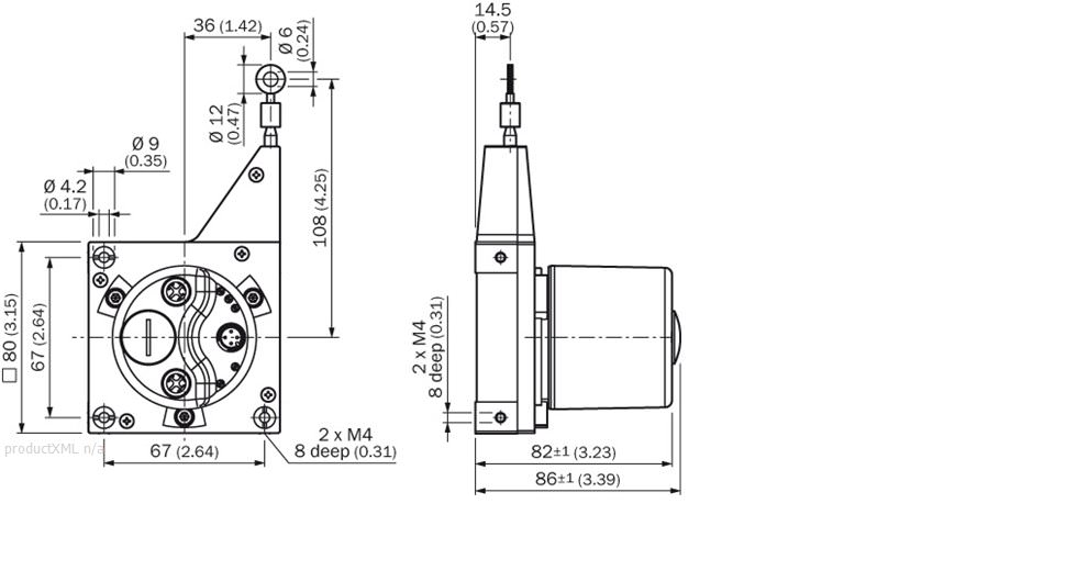 Mass (including encoder): 450 g Mass (mechanics): 250 g Measuring wire diameter: 0.55 mm Measuring wire material: Highly flexible stranded steel 1.4401 stainless steel V4A Housing material, wire draw mechanism: Plastic, Noryl Spring return force: Ca. 5 N ... ca. 6.3 N 1) Life of wire draw mechanism: 1 million cycles 2) Actual length of cable extension: 3.2 m Wire acceleration: 10 m/s² Operating speed: 4 m/s Mounted encoder: AFM60 EtherNet/IP Mounted mechanic: MRA-G080-103D3 Part number mechanic: 5322778 Part number encoder: 1055331 Mass (measuring wire): 1.2 g/m Length of wire pulled out per revolution: 230 mm Number of steps per revolution: 262,144 footnote 1) These values were measred at an ambient temperature of 25 °C. There may be variations at other temperatures. 2) Электрические параметры